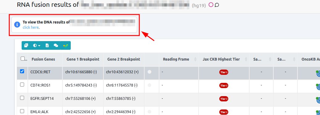 Moreover, if both DNA and RNA analyses were performed, the DNA results can be accessed via a link that redirects to the corresponding DNA analysis for the same sample.