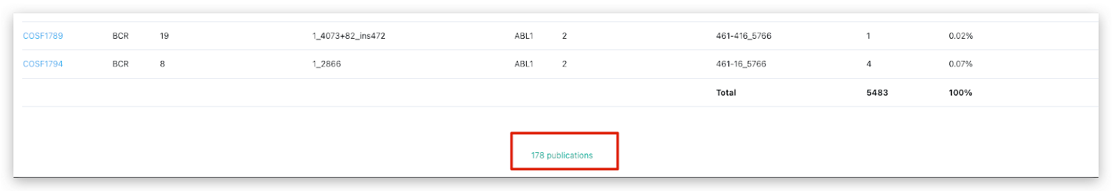- Fusion name (e.g., ABL1/BCR-ABL1)