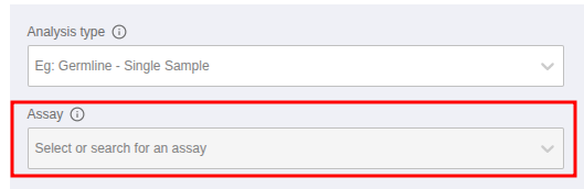 When launching a new analysis without workflows, you will be asked to select the "Assay", which refers to the capture or amplicon kit used for sequencing your sample.