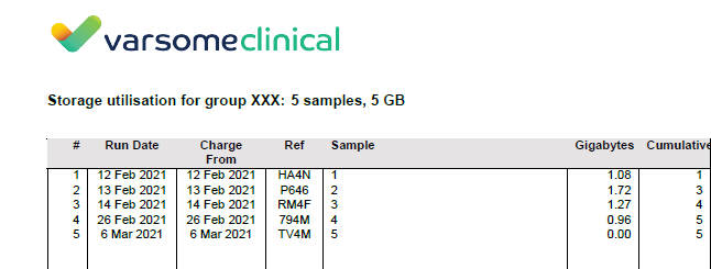 Storage fees are calculated at the end of each calendar month, based on the volume of data stored in VarSome Clinical for your organization. They reflect the storage costs of Saphetor’s data centers or cloud providers. There is no storage fee for on-premises installations.