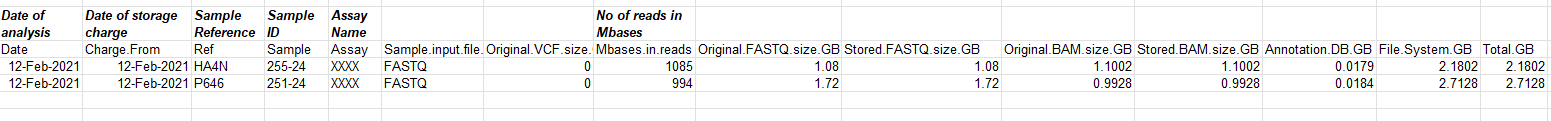 The Gigabytes column shows the volume of data stored for each individual sample whereas the cumulative column shows the sum of Gigabytes for all the samples together. In the example above, the total space occupied by these 5 samples is 5GB.
