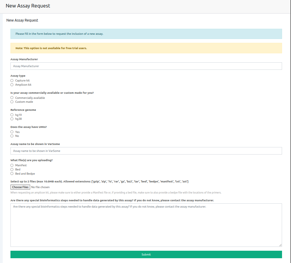 If you are a VarSome Clinical customer and your assay is not yet available in VarSome Clinical, we can add your assay if it is an assay we can support.