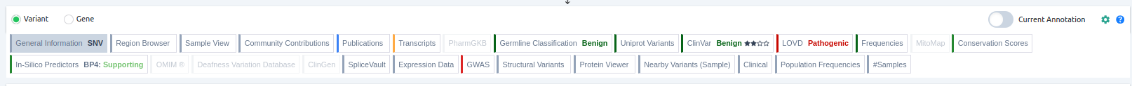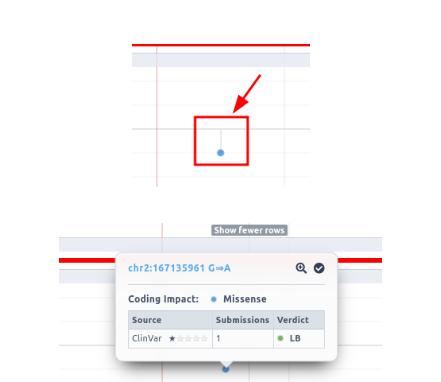 - Known gene variants: Variants in the selected gene with known pathogenicity.