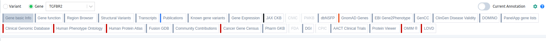 - PanelApp gene lists: Catalog of available gene panels including the selected gene.