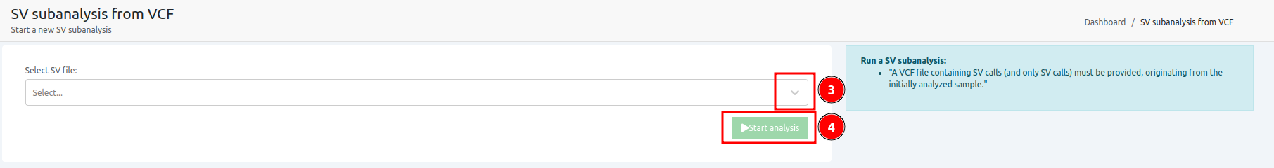 - Launching the analysis once the main analysis has finished as a "New SV sub-analysis" either from single or multi sample analyses.