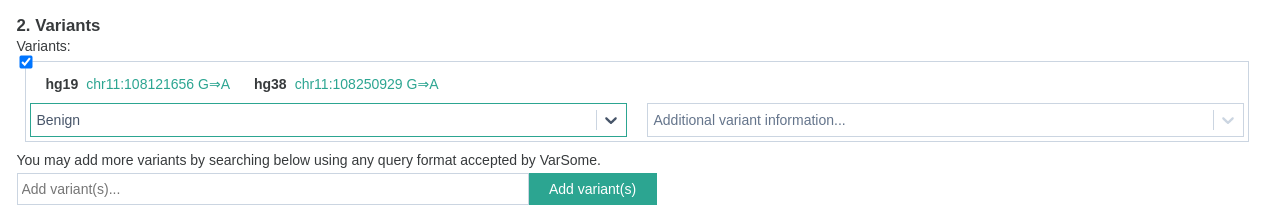 Next, you are asked to add supporting information about this variant, mentioned in or derived from the article, such as the claimed pathogenicity, or the mode of inheritance.