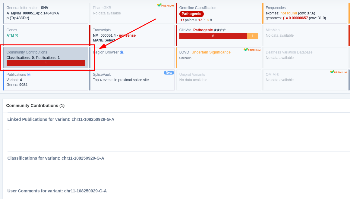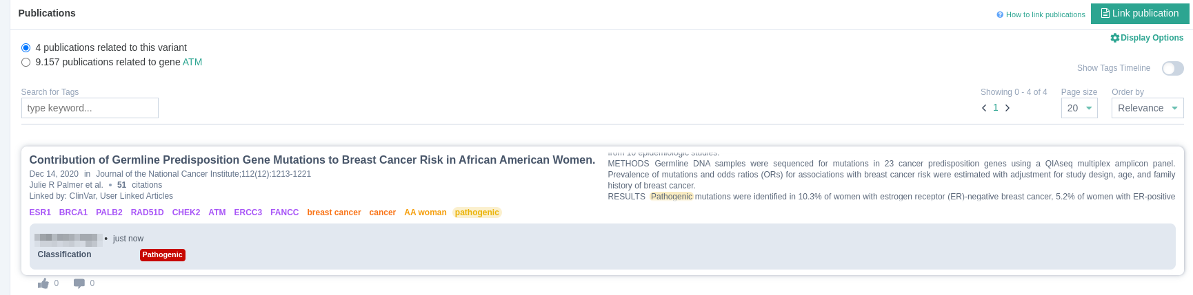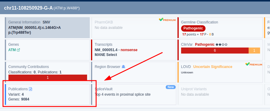 In this example, we will be using the variant ATM:c.1464G>A. First, click on the “Publications” tab and then on “Link a publication”