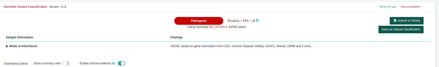 However, for the Germline Variant Classification, as a part of the annotation of variants, VarSome Clinical considers only one transcript - by default the transcript with: