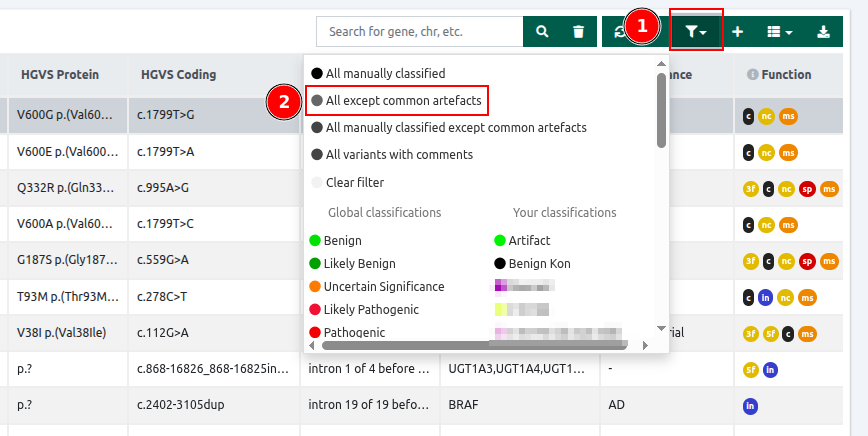 - If you have a pre-defined list of common artefacts, you can send us your list and we will label these variants as "Common artefact". Please, find more information here.