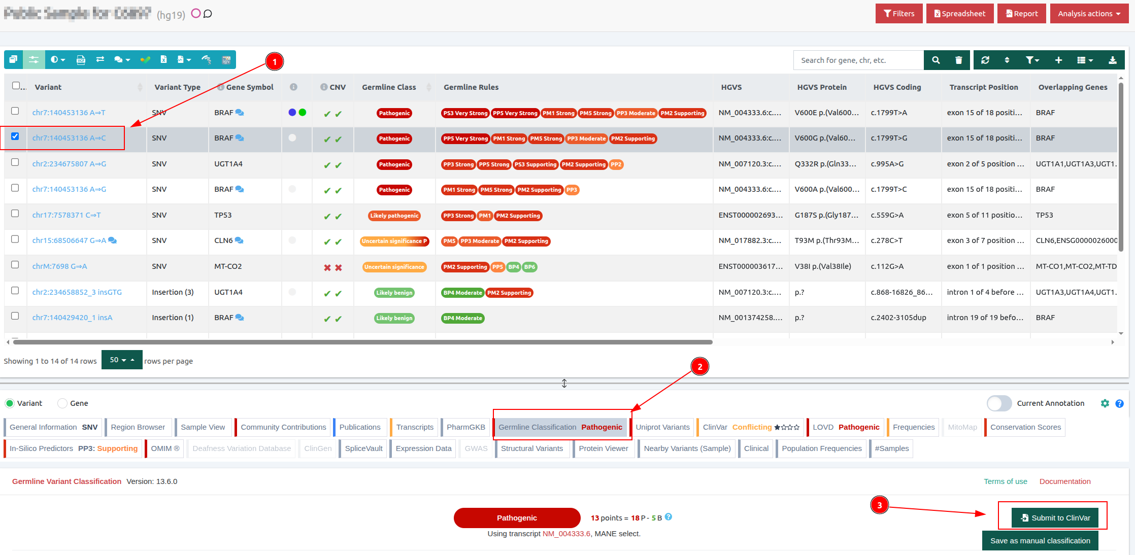 Then click on the ‘’Submit to ClinVar’’ button, which is available inside the Germline Classification component.