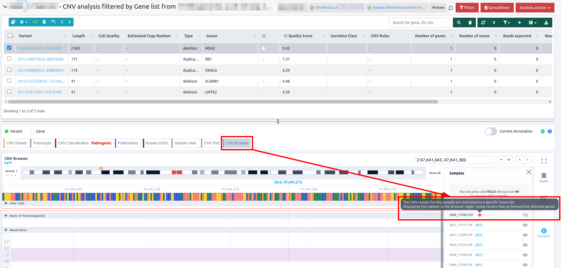 Please note that in the CNV Browser, the results will not be restricted to the gene list but will include results that go beyond the selected genes.