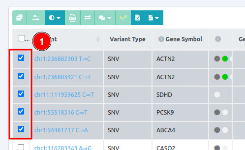 - On the Variant Table page, you can either select one variant at a time just by clicking on it or you can select multiple variants at once (mass selection) by holding Ctrl and clicking on each variant you wish to include to your list.