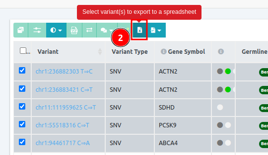 - Then, you can click on “Select variant(s) to export to a Spreadsheet” for the variant(s) to be included in the Spreadsheet.