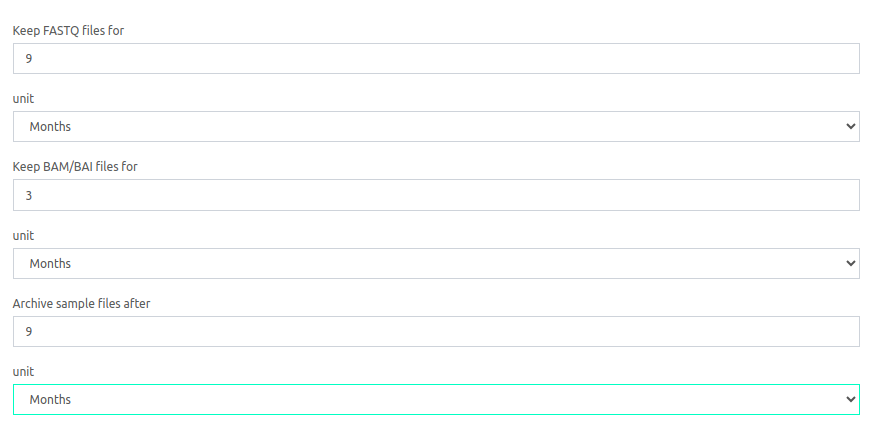They can be modified within VarSome Clinical to define for how long the customer wants to store the FASTQ and BAM/BAI files and when their analyses should be archived.