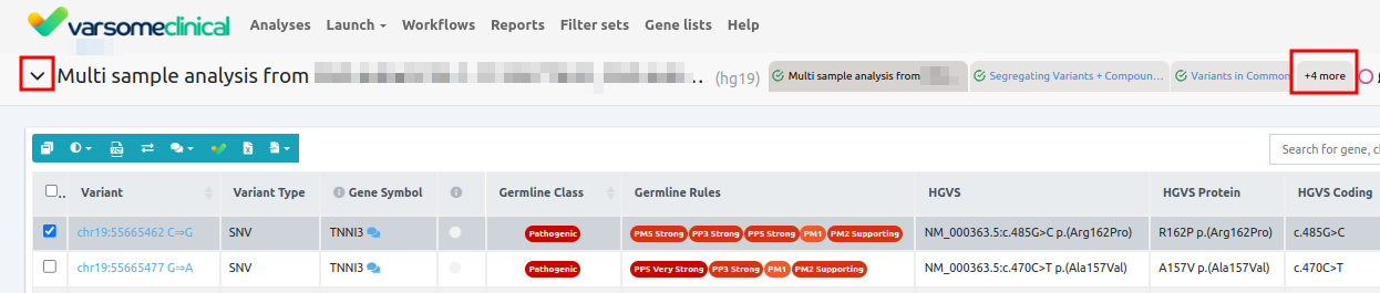 If multiple analyses have been performed using the same sample, they will be organized as tabs adjacent to the current analysis's title, with the first tab being the main analysis.