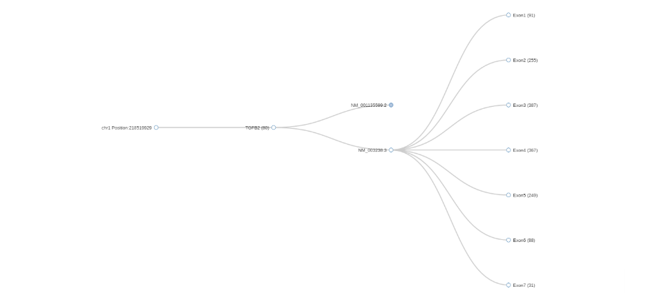 Gene coverage: a pop-up window showing the average coverage for the selected gene and its different transcripts. Clicking on the nodes will expand or collapse the tree.