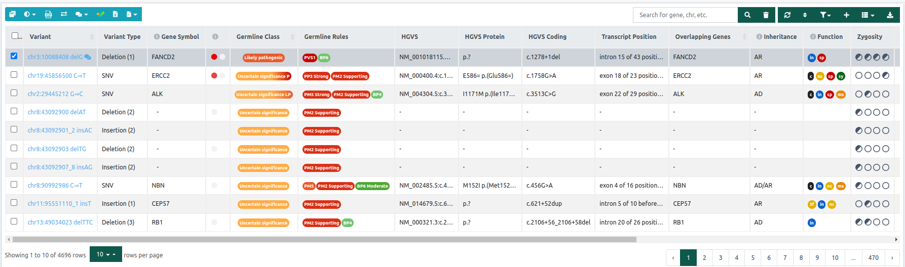 - there is a CNV in the same gene where the current variant was found (not necessarily in the same position of the variant) - Class: Variants are ordered by our pathogenicity classification: